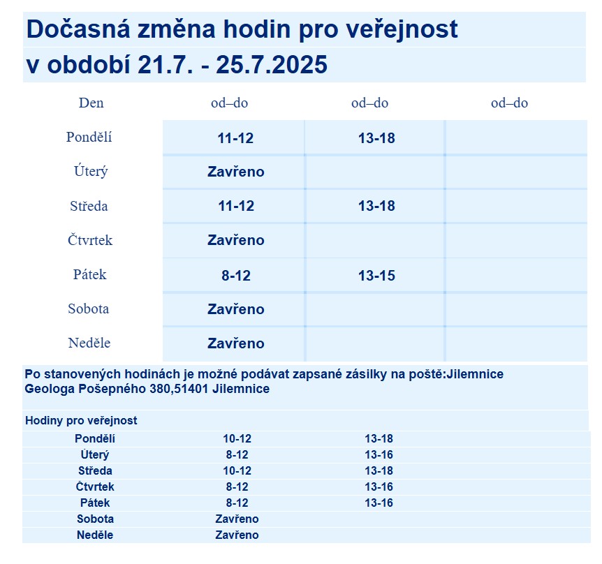Česká pošta - Dočasná změna hodin pro veřejnost v období 21.7. - 25.7.2025