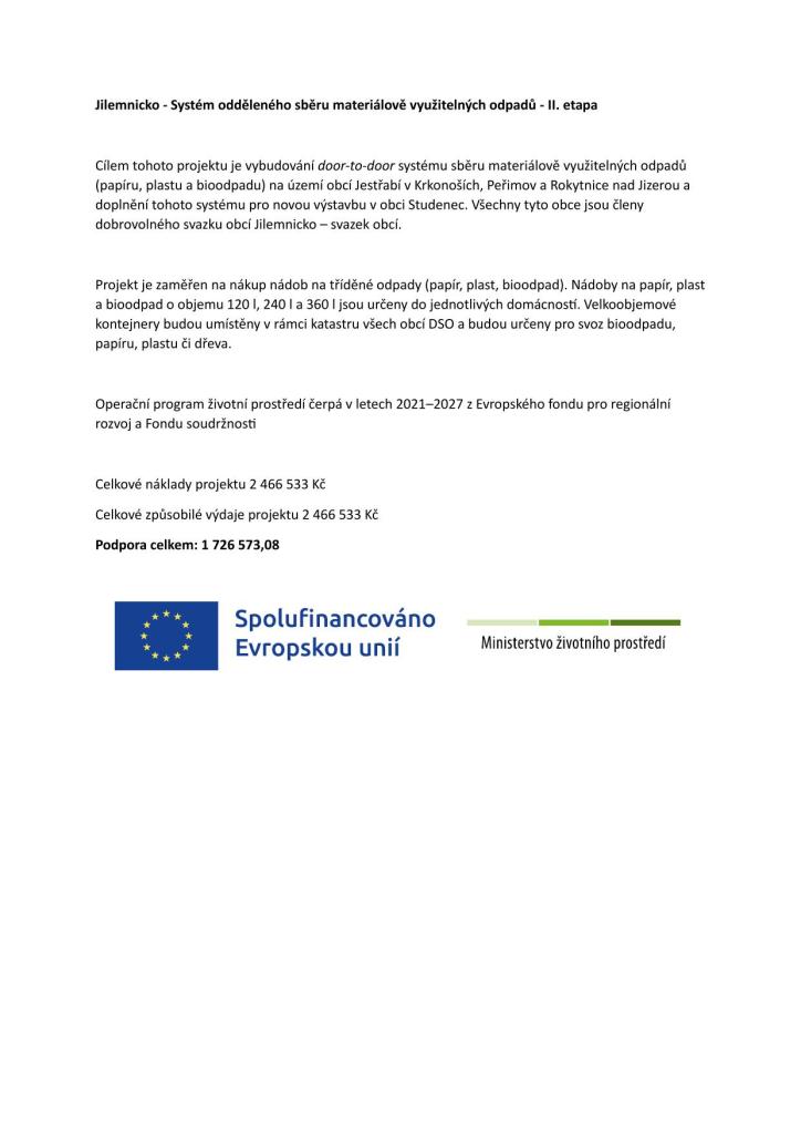 Jilemnicko - Systém odděleného sběru materiálově využitelných odpadů - II. etapa