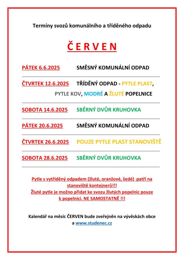 Svoz odpadů červen 2025