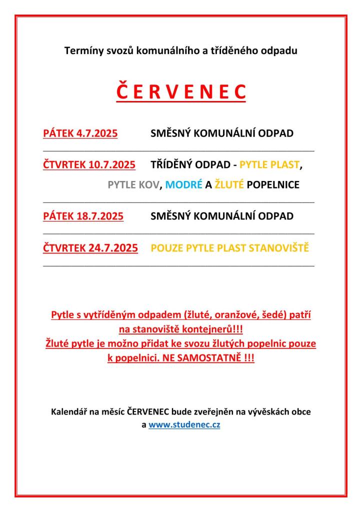 Svozy odpadu červenec 2025